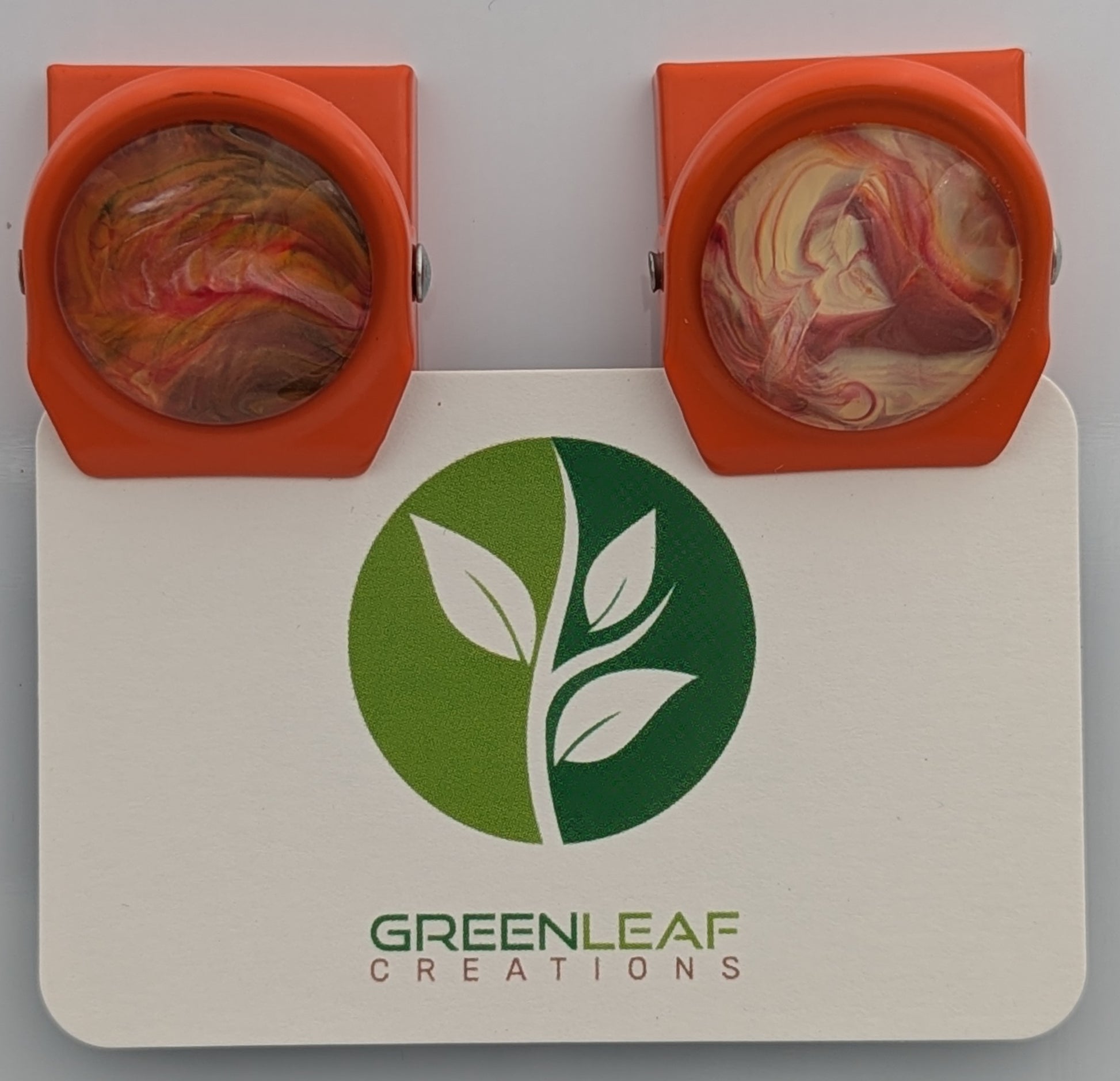 Each magnet features original hand-painted fluid acrylic artwork sealed beneath glass, ensuring every pair is completely one of a kind.