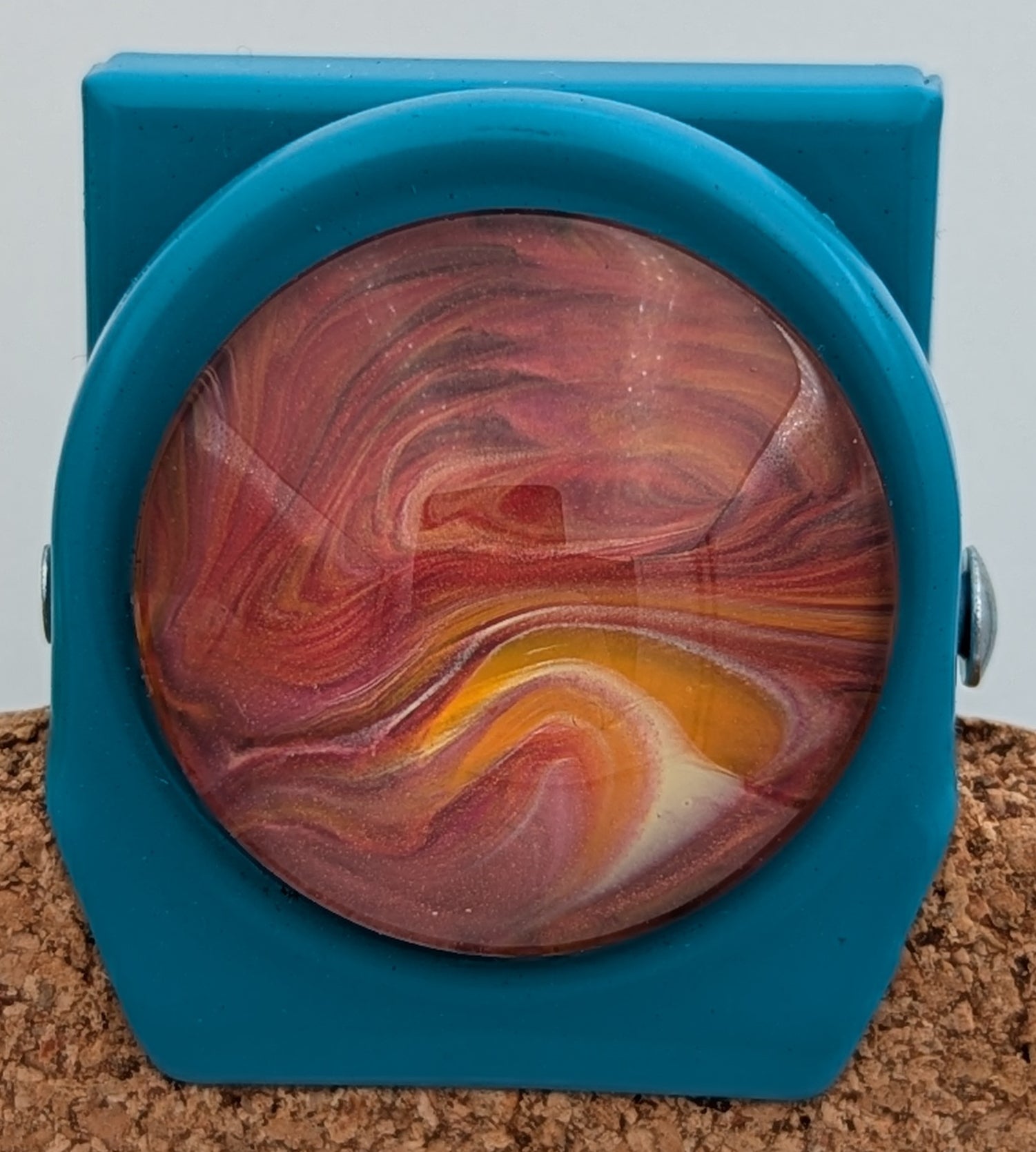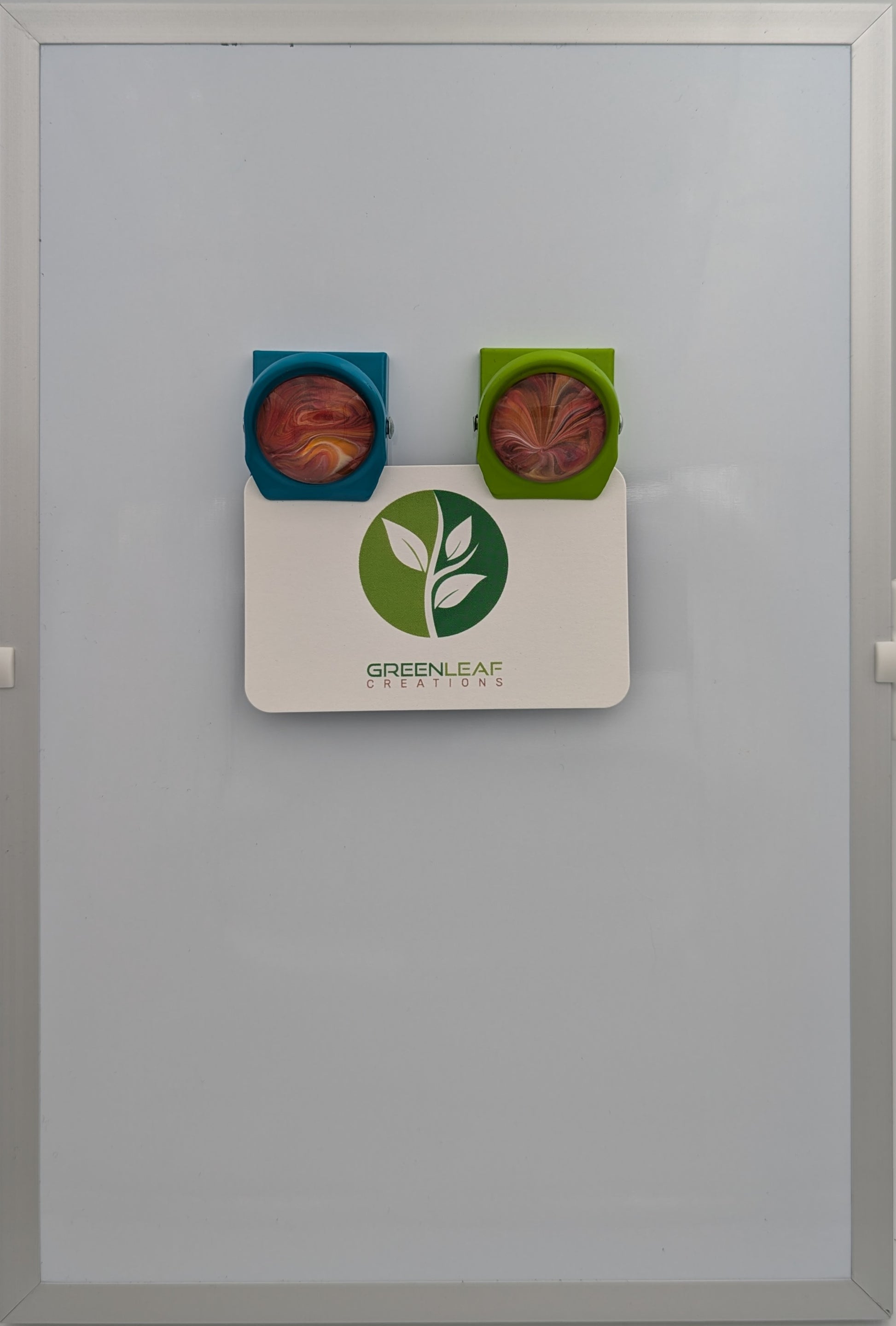 Each magnet features original hand-painted fluid acrylic artwork sealed beneath glass, making every piece completely one of a kind.
